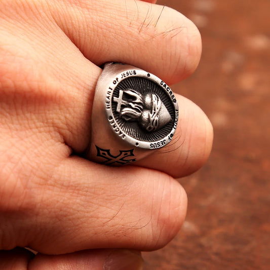 Anel Masculino Sagrado Coração de Jesus em Aço Inoxidável