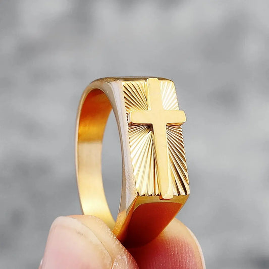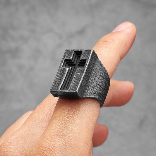 Anel Cruz Esculpida em Aço Inoxidável 316L para Homens
