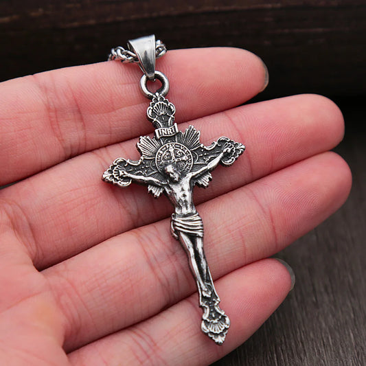Colar Masculino Vintage Cruz de São Bento em Aço Inoxidável 316L