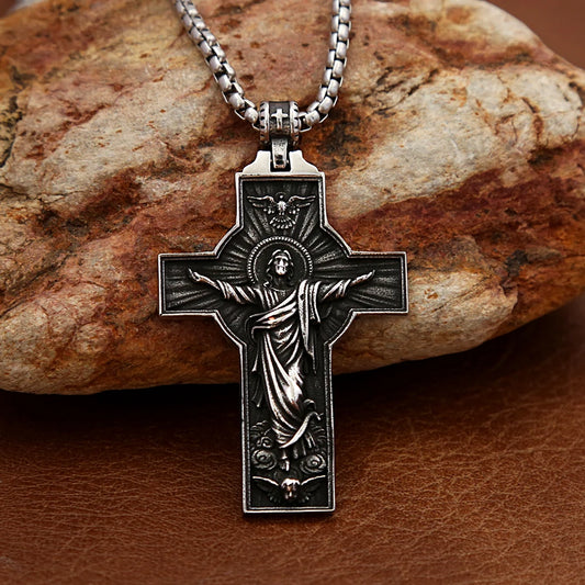 Colar Masculino Cruz Jesus Subindo aos Céus em Aço Inoxidável