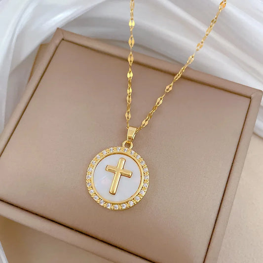 Colar Pingente Cruz Circular em Aço Inoxidável