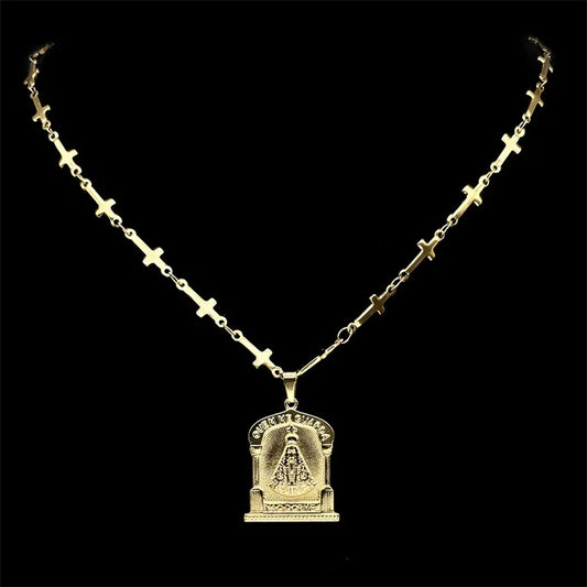 Colar Nossa Senhora Aparecida Aço Inoxidável Dourado