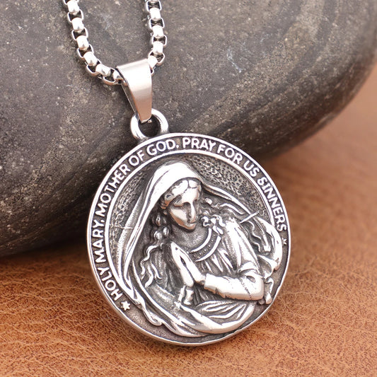Colar Masculino de Aço Inoxidável Santa Maria Mãe de Deus