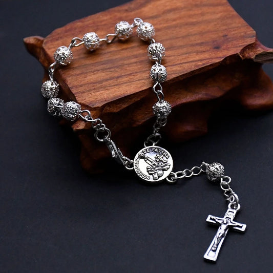 Mini Terço Dezena de São Miguel com Cruz do Perdão e Contas de Hematita
