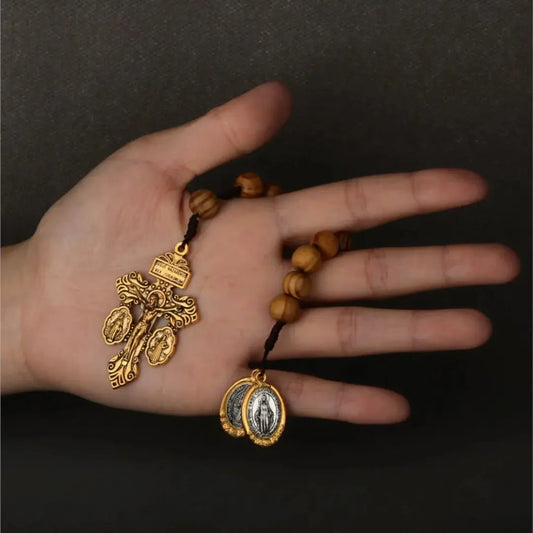 Mini Terço do Perdão de Madeira Modelo Redenção Dourado