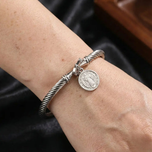 Pulseira Feminina de Aço Inoxidável com Cruz