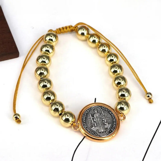 Pulseira Feminina Nossa Senhora de Guadalupe com Contas Douradas