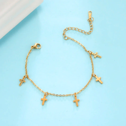 Pulseira Feminina com Cruz em Aço Inoxidável Banhada a Ouro 14K