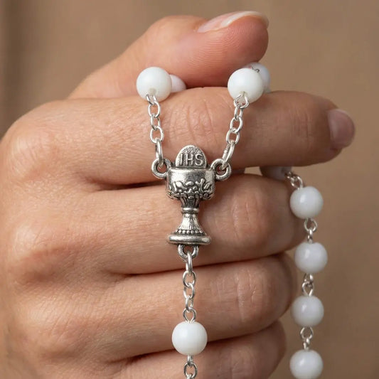 Terço Branco da Santíssima Eucaristia Modelo Sacra