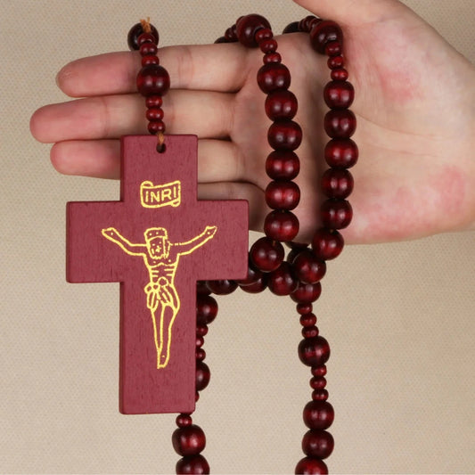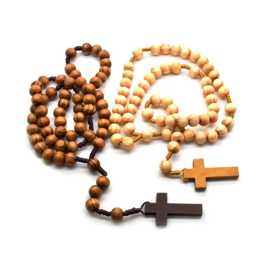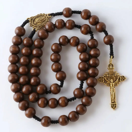 Dezena com Contas de Madeira com Medalha de São Bento e Crucifixo