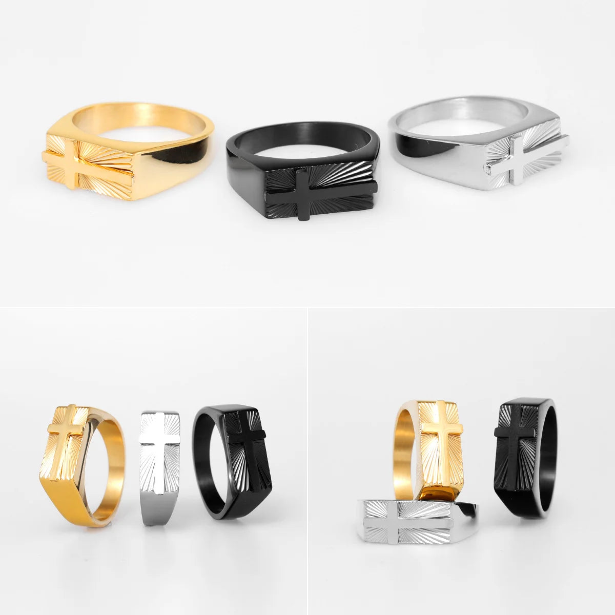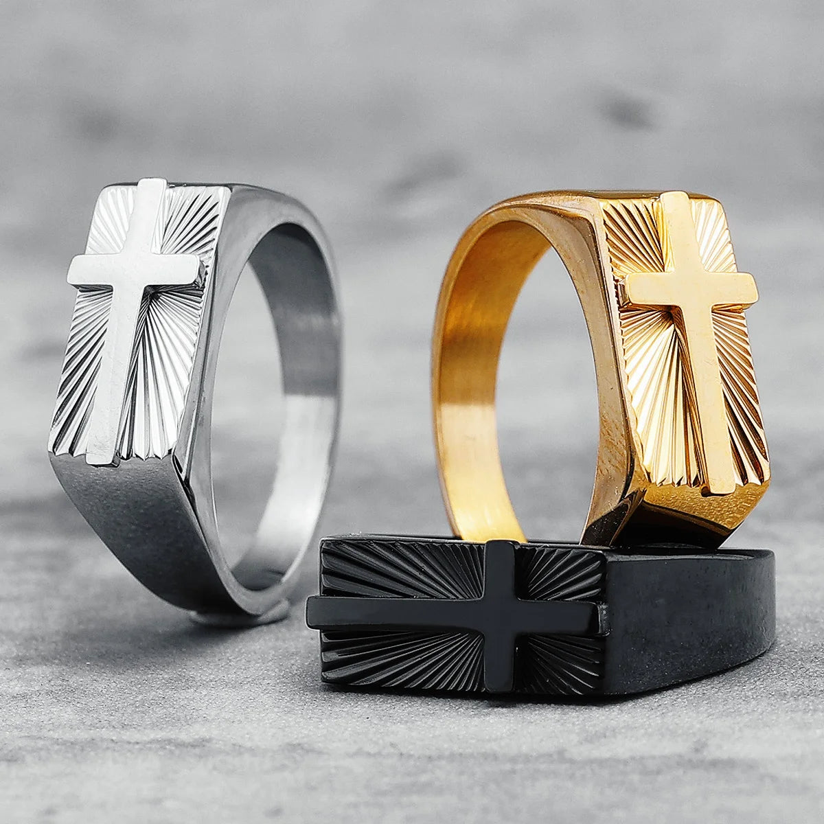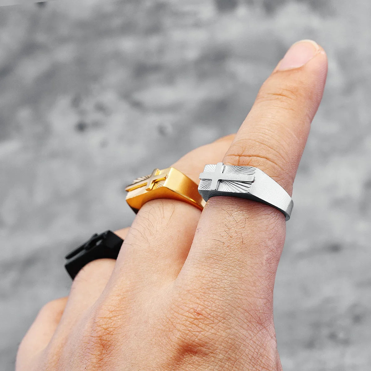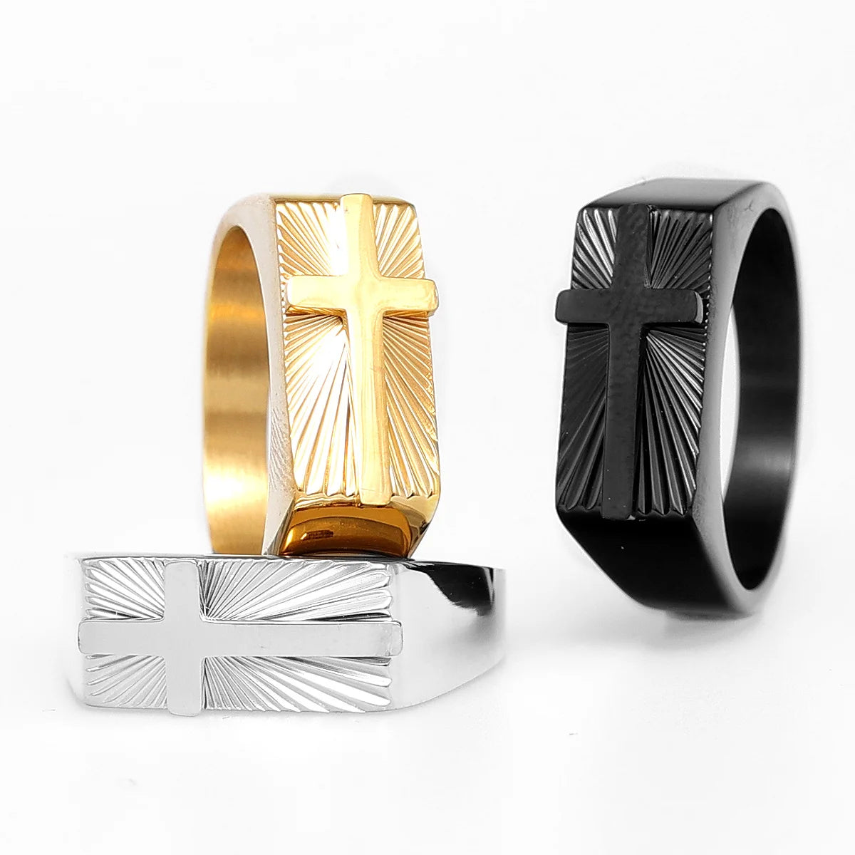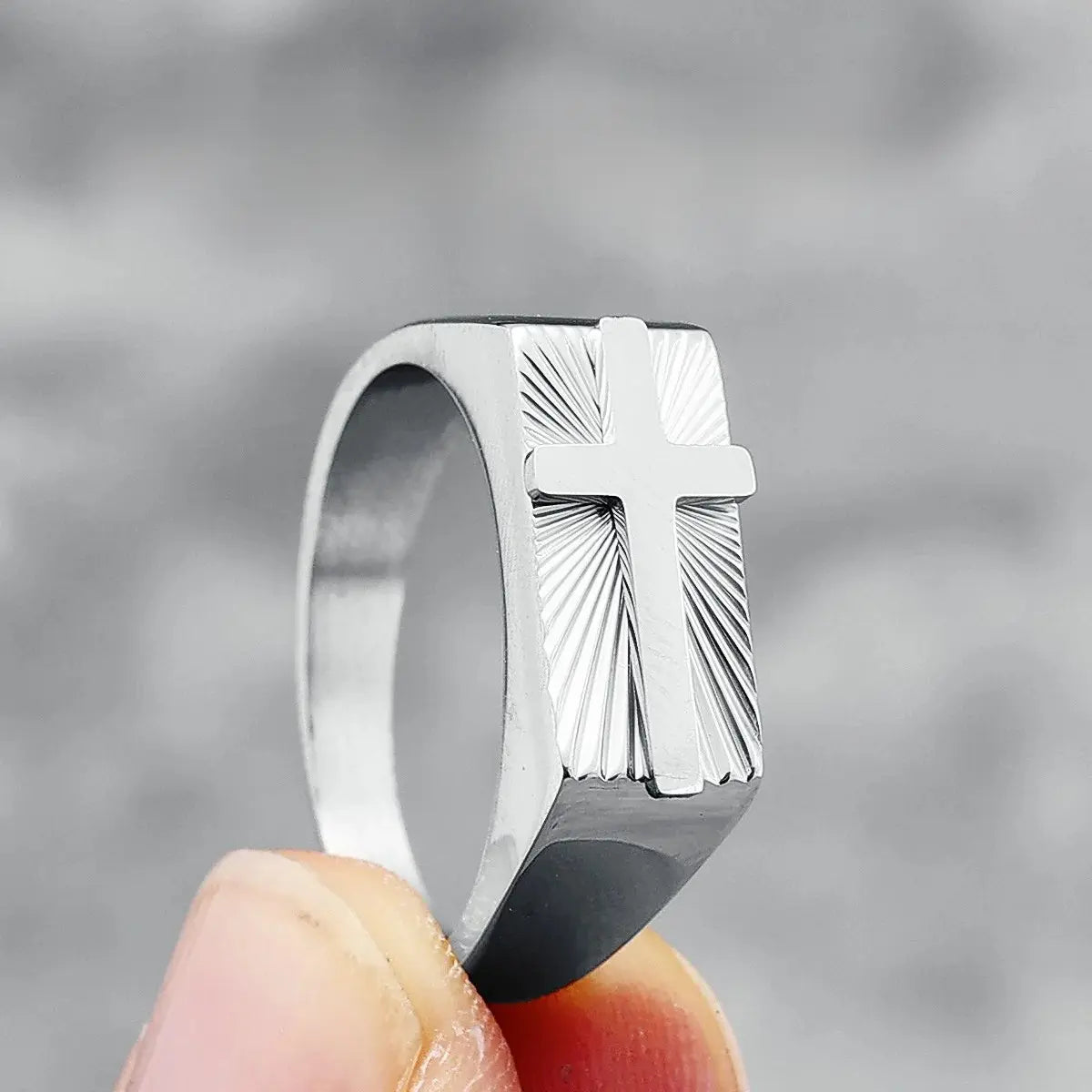 Anel Cruz Esculpida em Aço Inoxidável 316L para Homens
