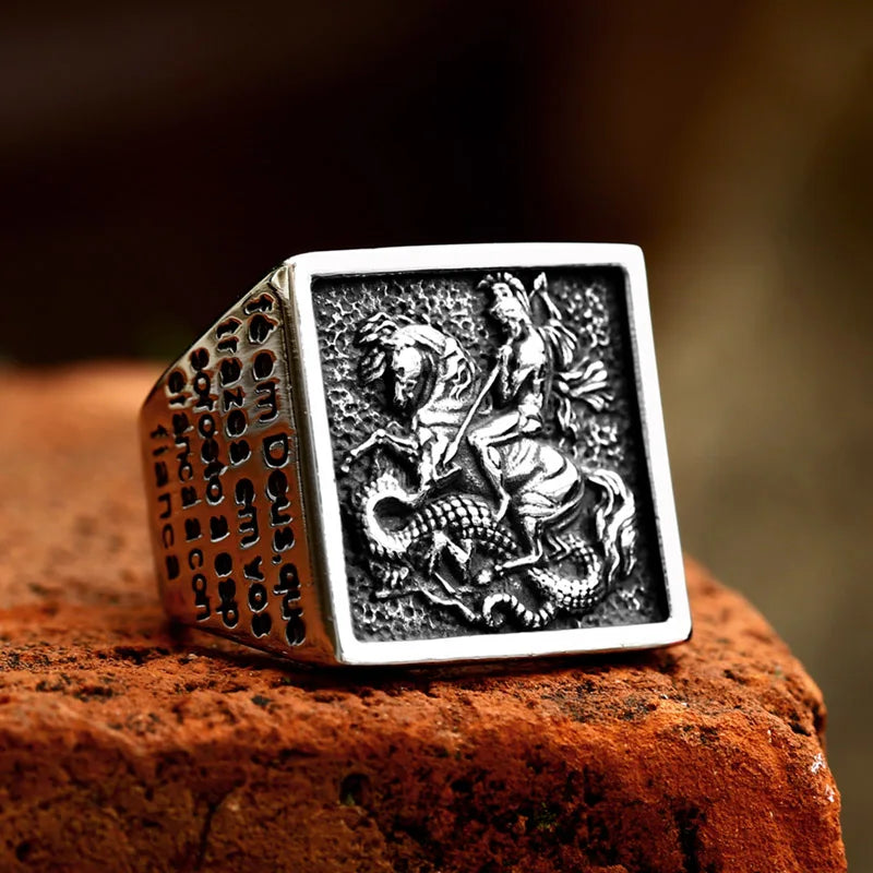 Anel Masculino Prateado São Jorge