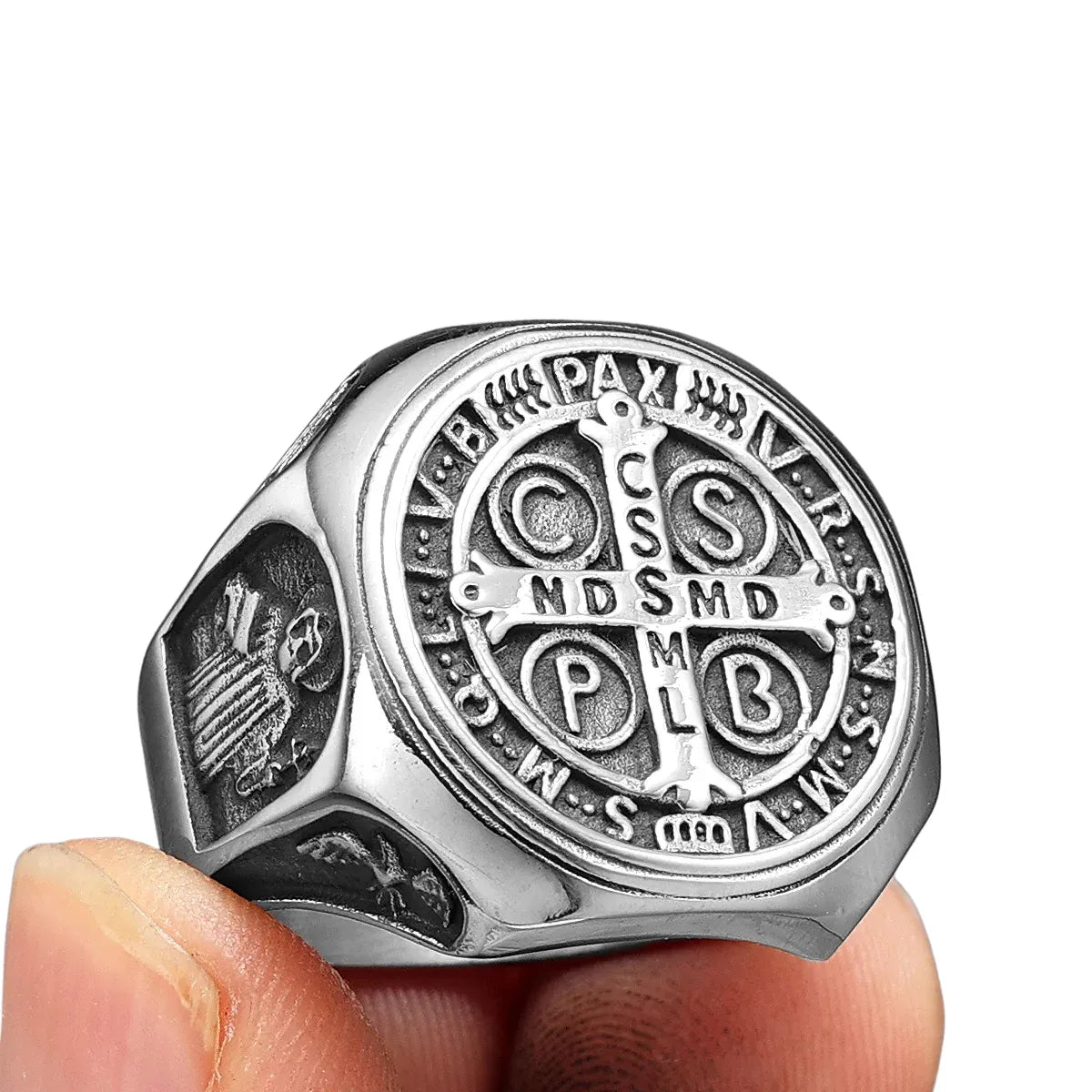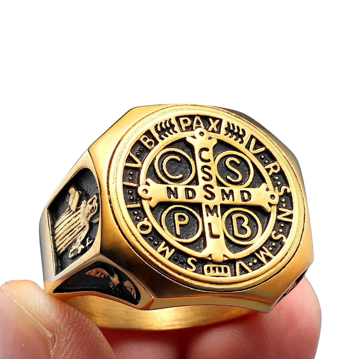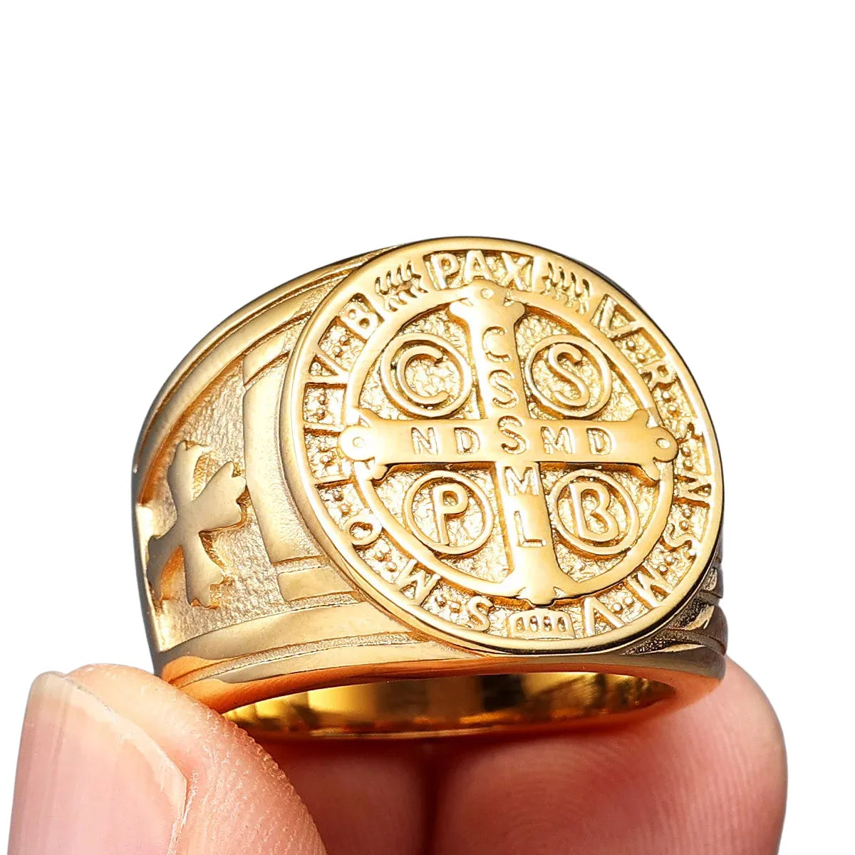 Seu acabamento robusto e o peso visual da Medalha de São Bento fazem deste anel um símbolo de proteção, vigilância espiritual e maturidade interior.