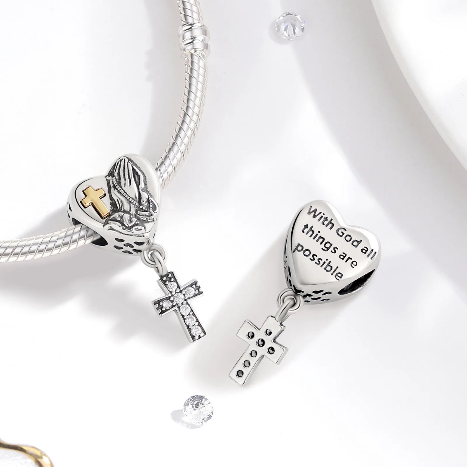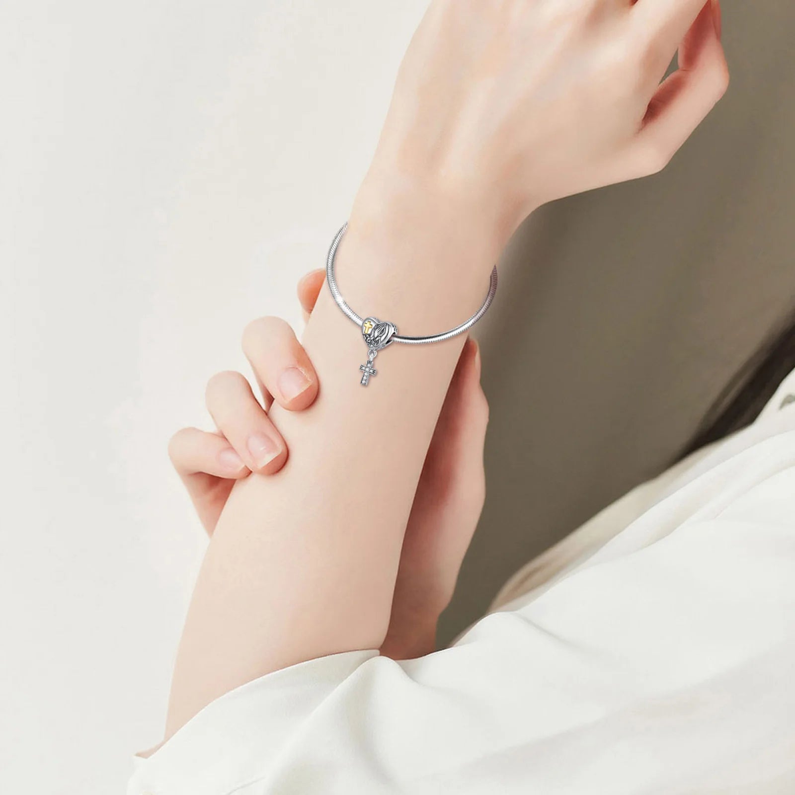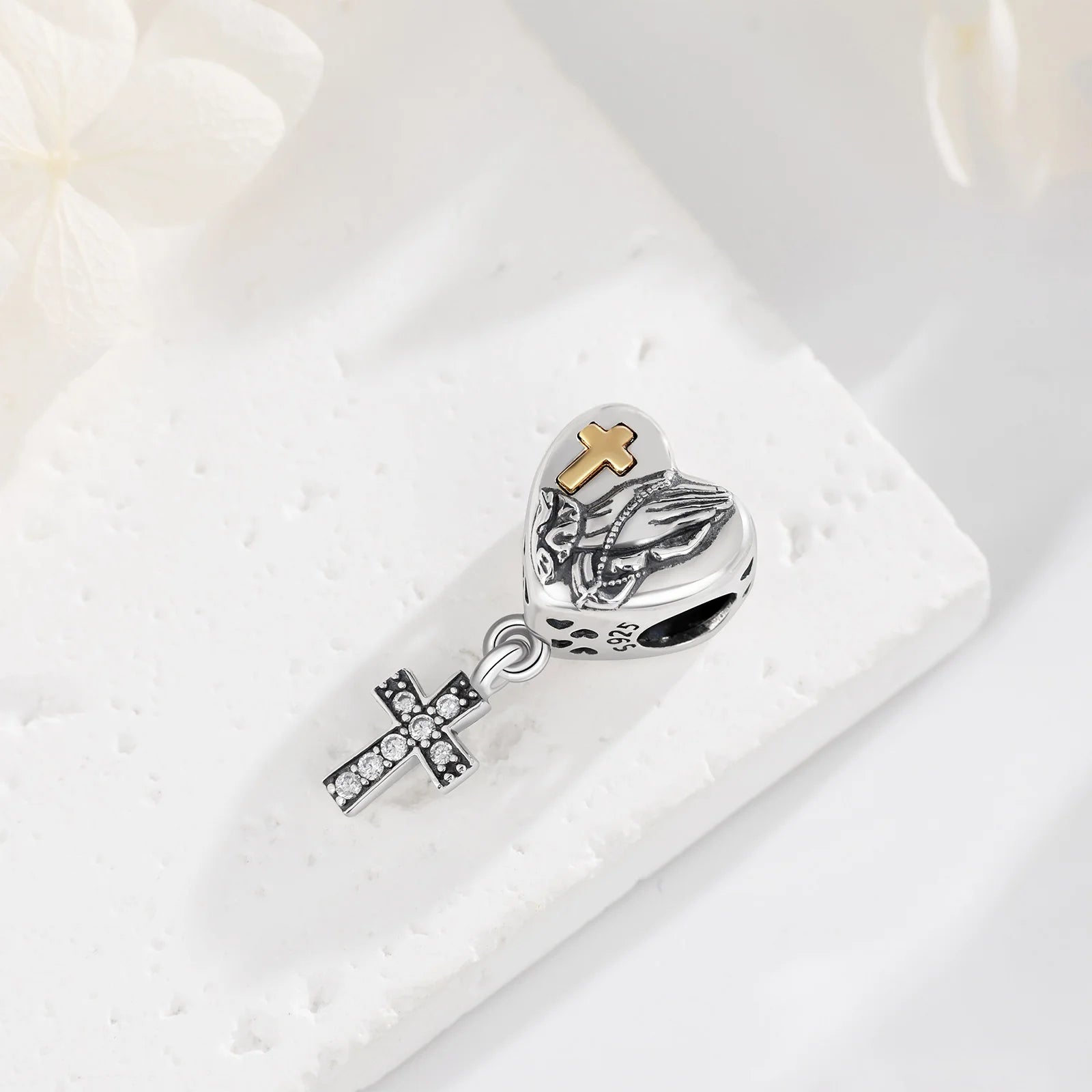 O Berloque Cruz em Prata Esterlina 925 com Mãos em Oração é mais do que um detalhe elegante: é um lembrete constante da presença de Deus em sua vida.