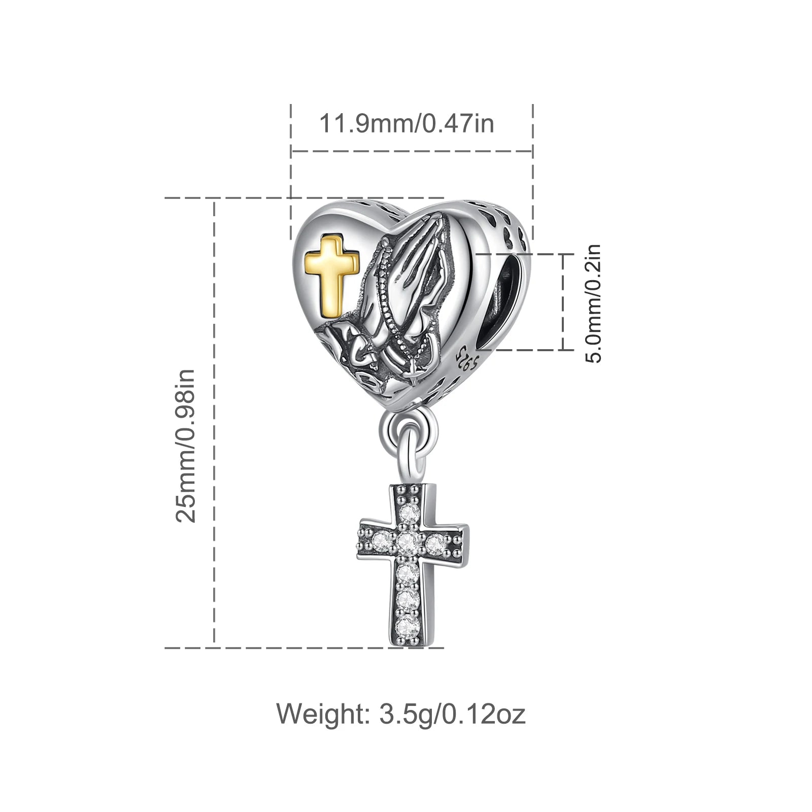 Berloque Cruz Prata Esterlina 925 com Mãos em Oração