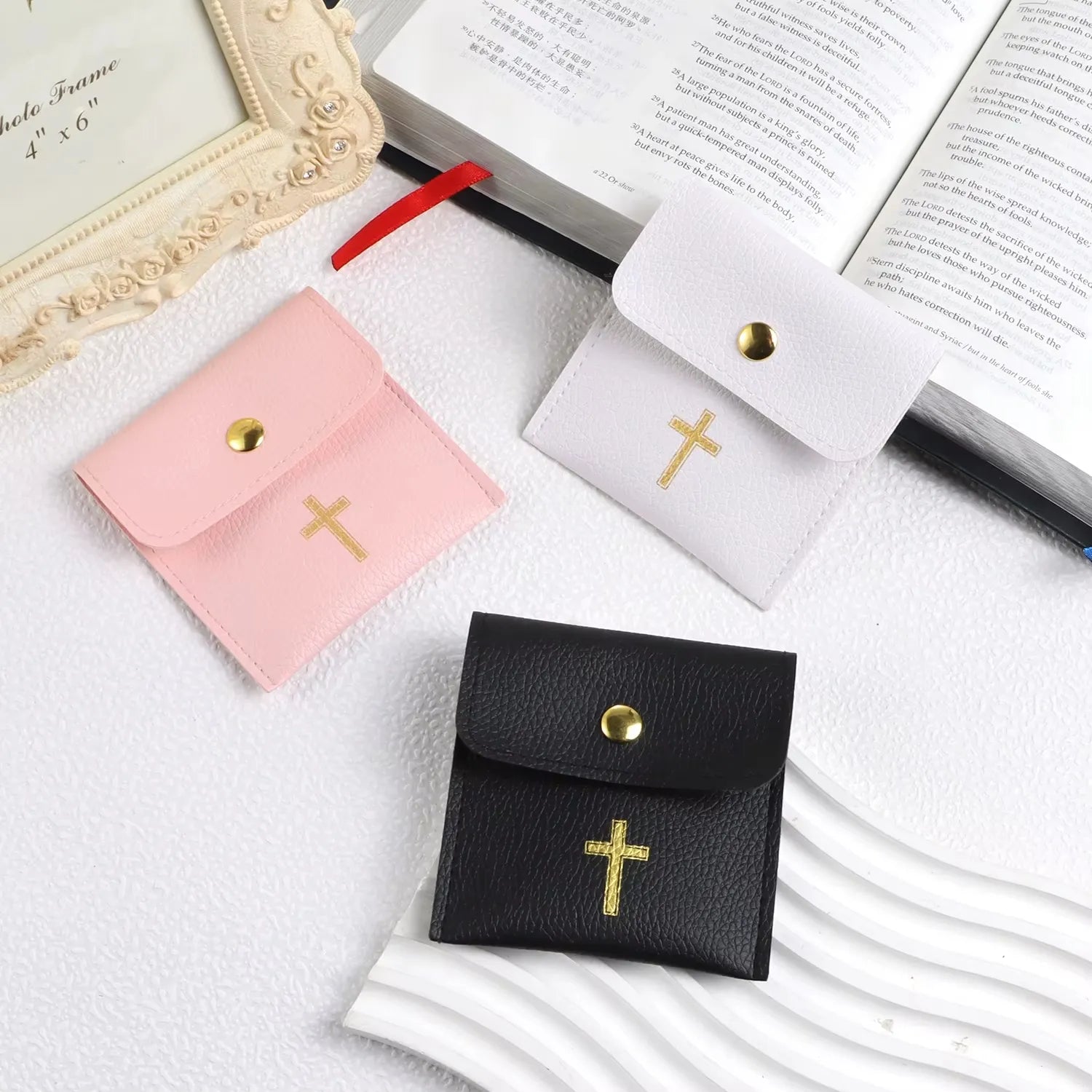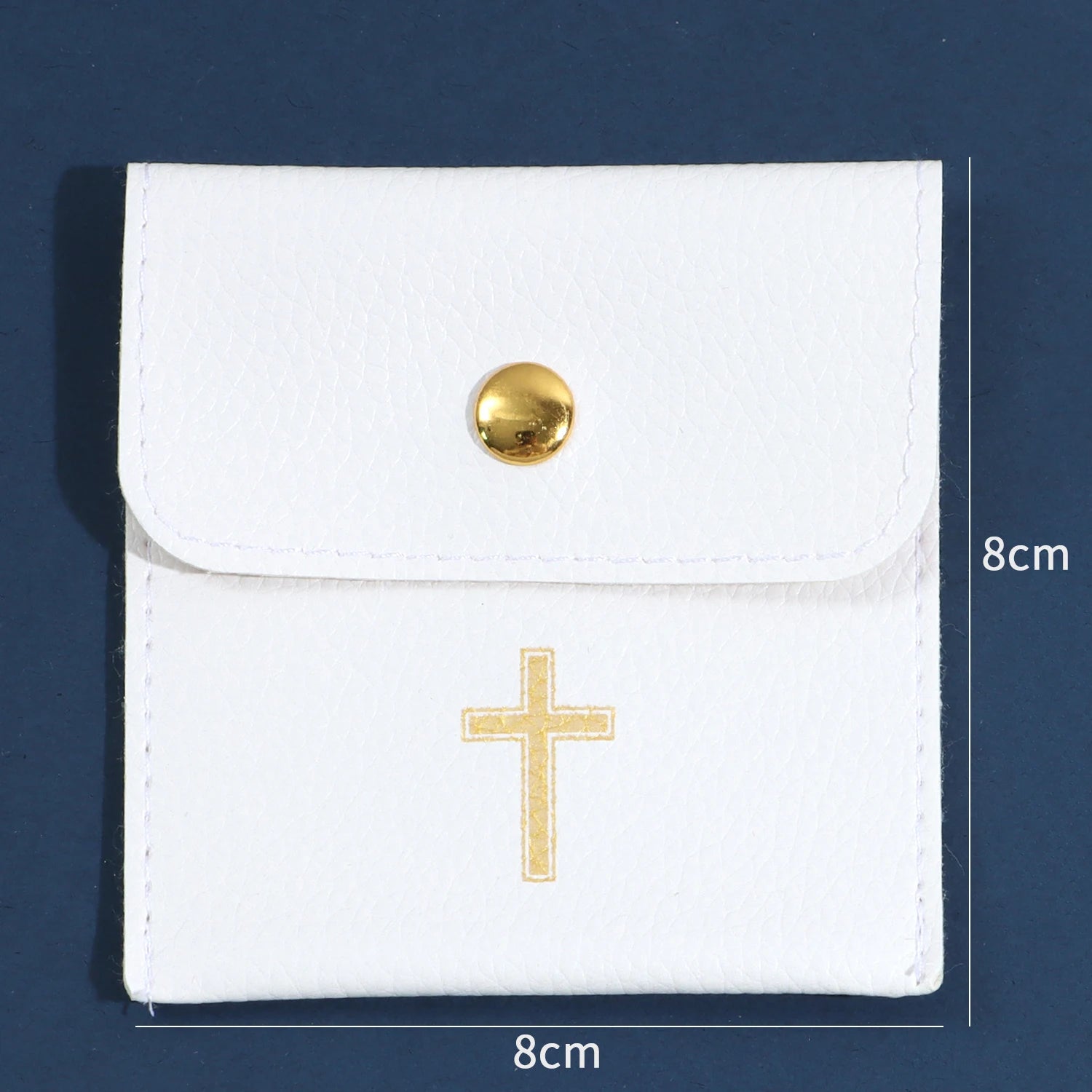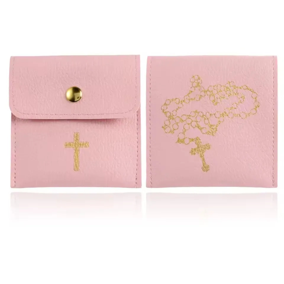 Bolsa Porta Terço em Couro com Cruz Dourada
