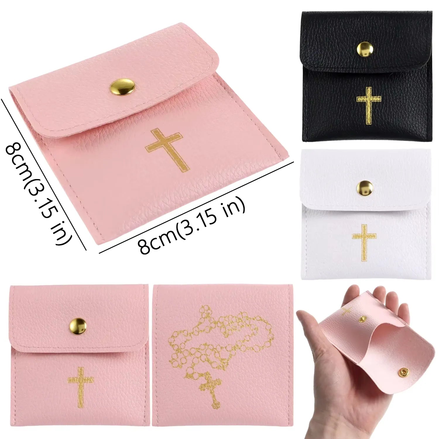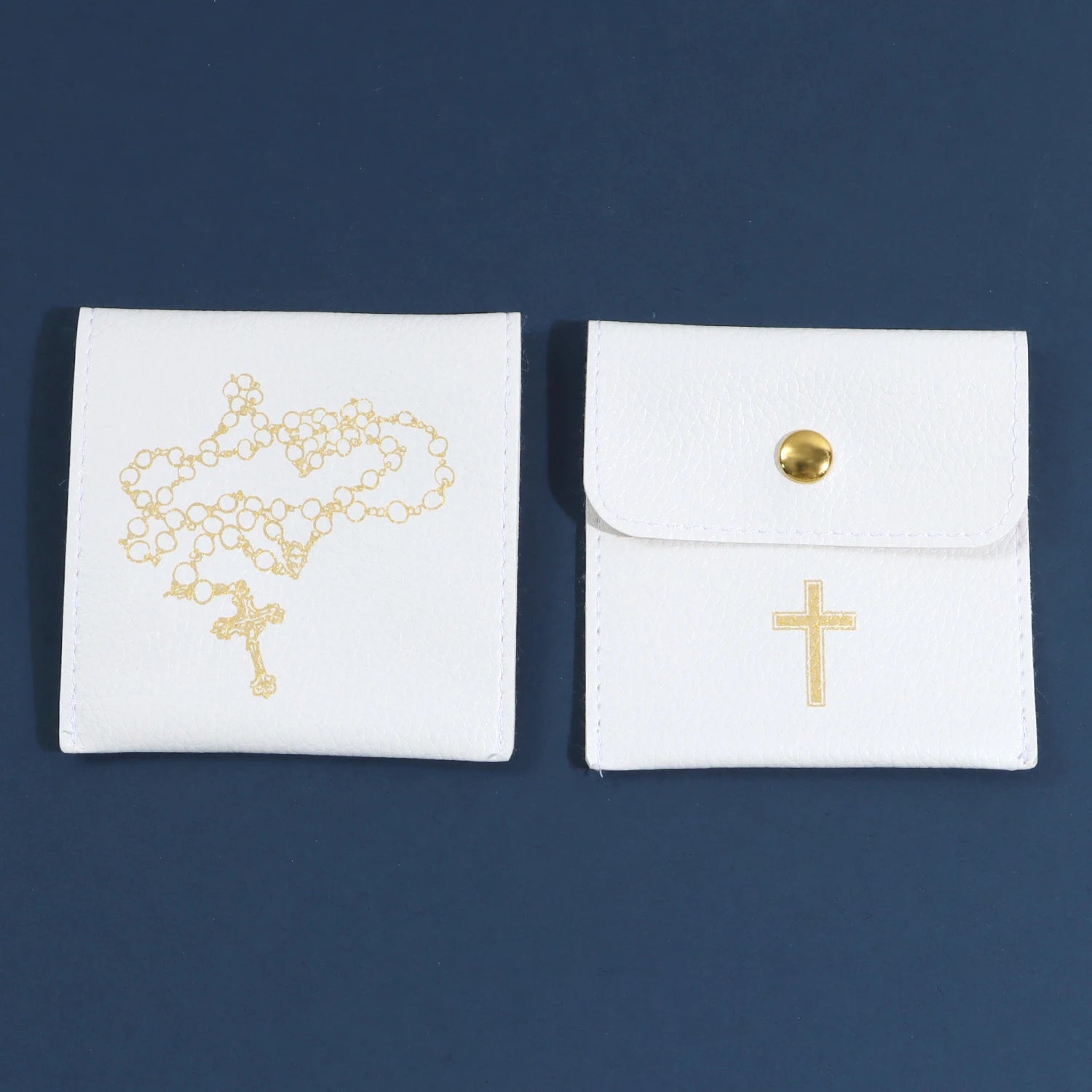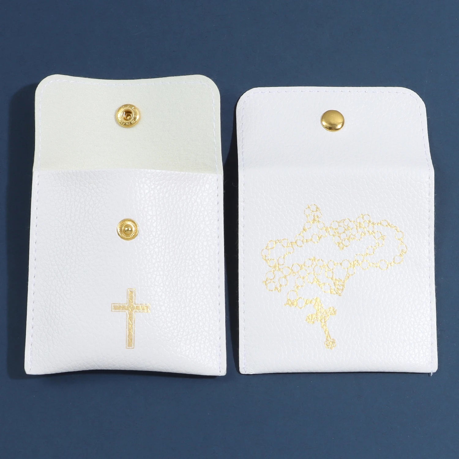 Bolsa Porta Terço em Couro com Cruz Dourada