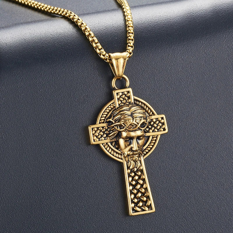Colar Cruz Jesus em Aço Inoxidável Vintage para Homens