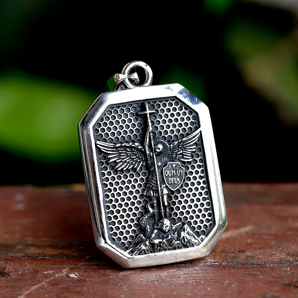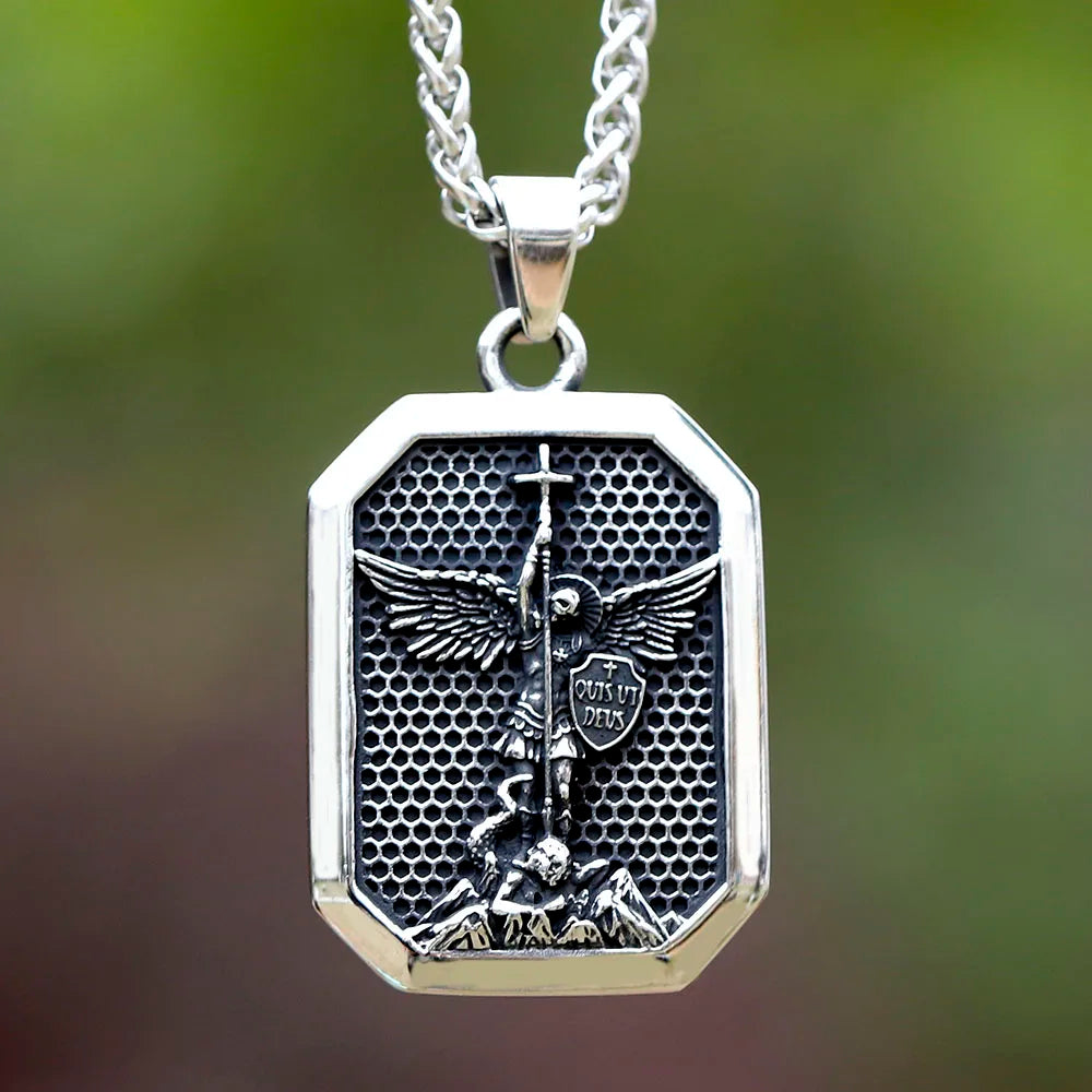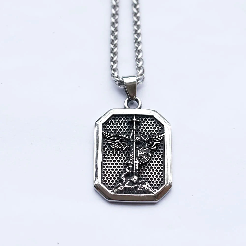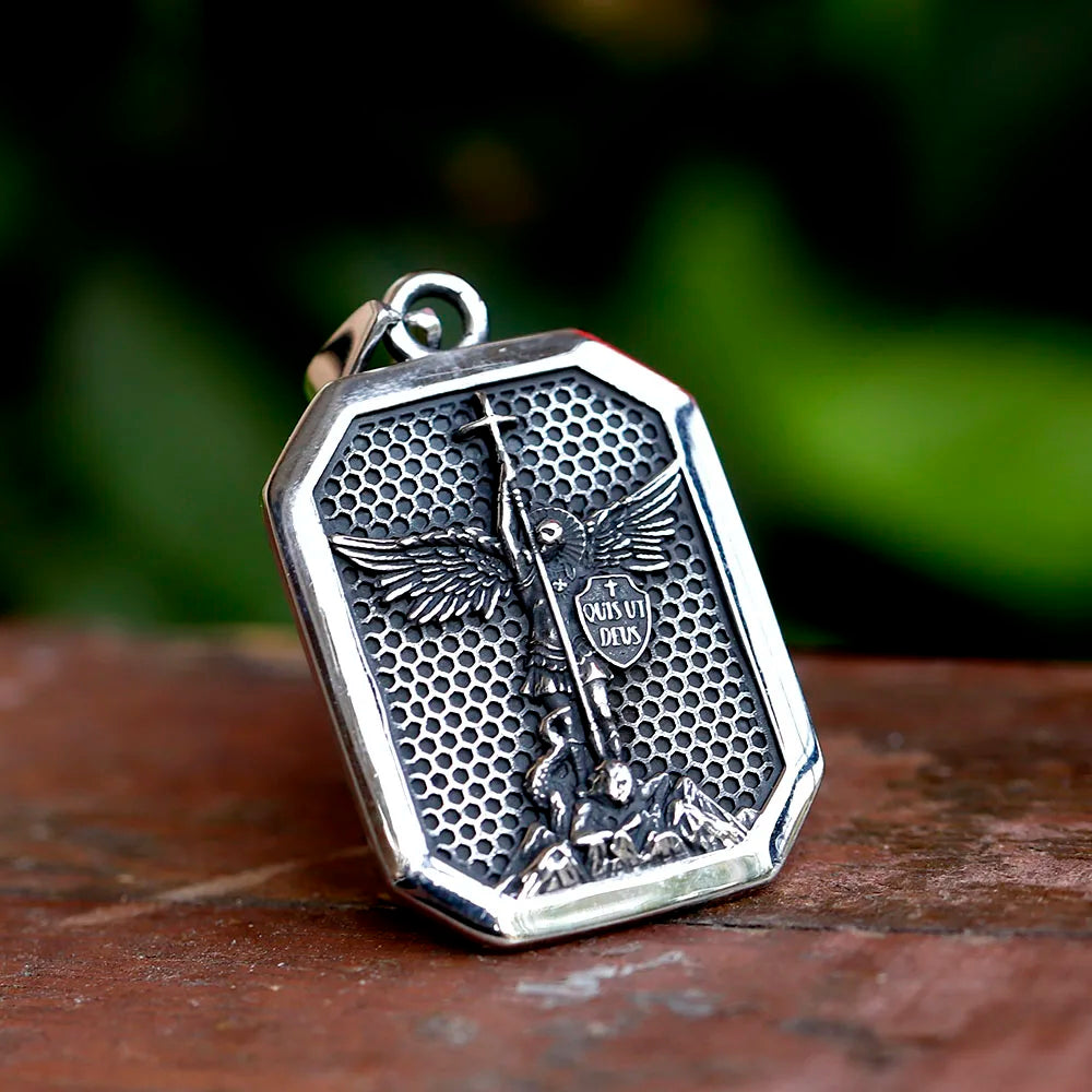 O pingente octogonal, com a imagem de São Miguel Arcanjo em relevo, representa coragem, justiça e a luta pelo bem. Uma peça que carrega uma mensagem forte, ideal para homens que buscam propósito em tudo o que vestem.