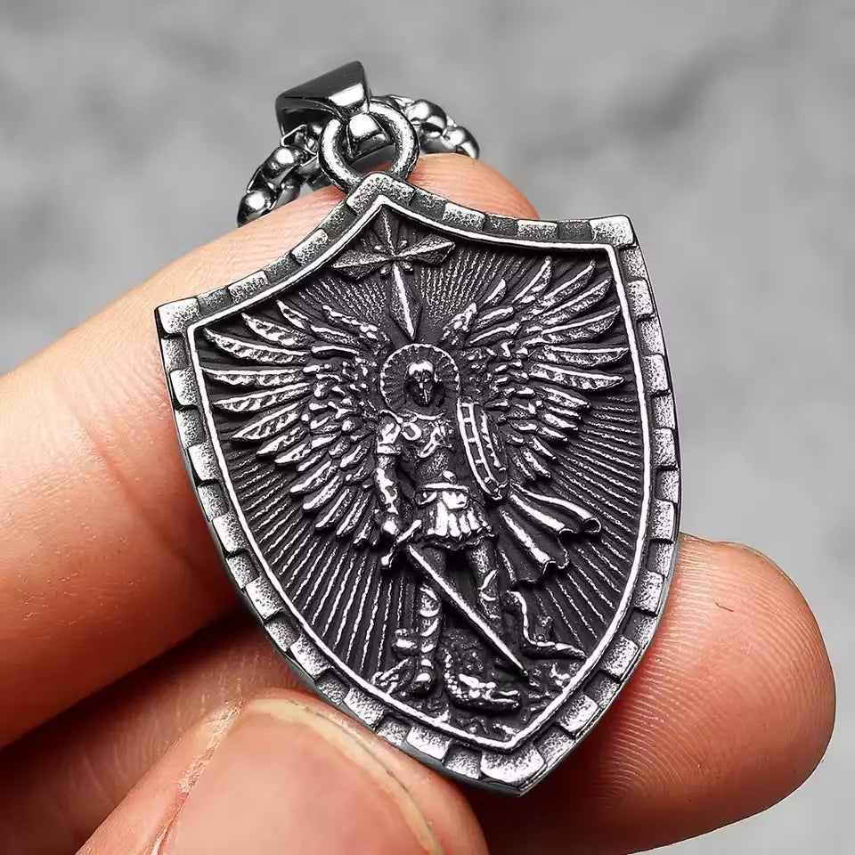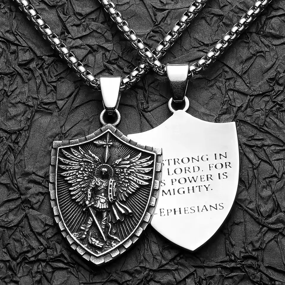 Use este colar como um lembrete de que você nunca caminha sozinho. São Miguel luta por você.