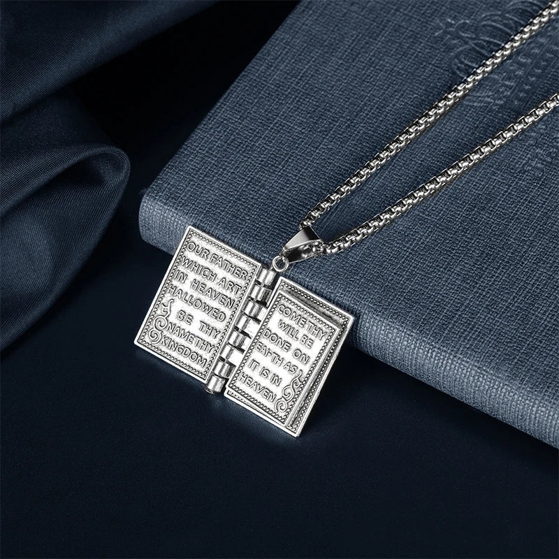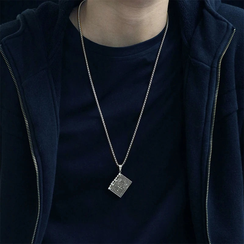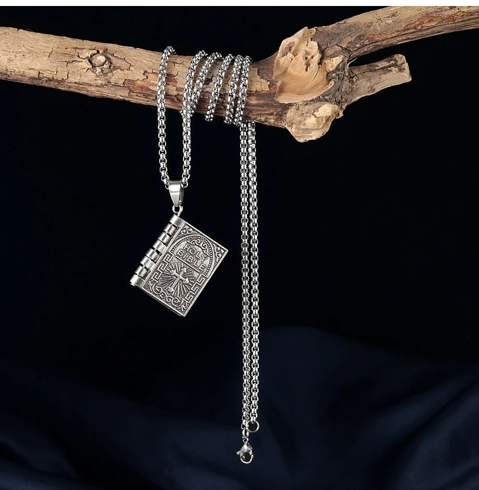 Colar Pingente Bíblia Vintage em Aço Inoxidável