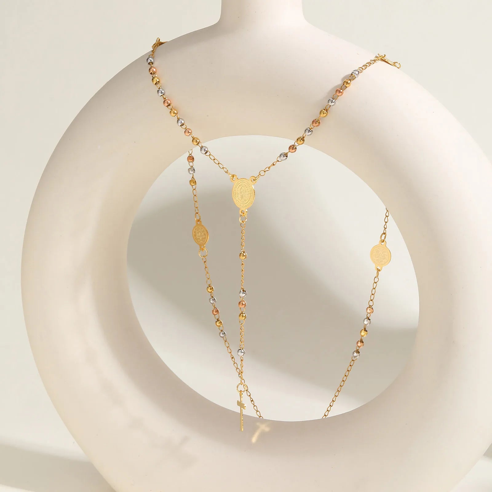 Criado para o uso diário, o Colar Terço Feminino une sobriedade e significado espiritual. Uma forma delicada e consciente de manter a oração presente ao longo do dia.