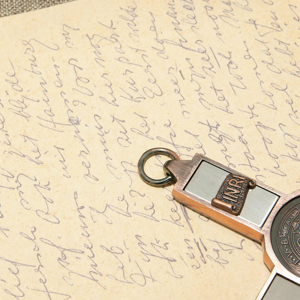 O Crucifixo com Medalha de São Bento simboliza a proteção espiritual contra o mal e as tentações, através da intercessão de São Bento. Ele também representa o sacrifício de Cristo na cruz, que traz salvação aos fiéis.