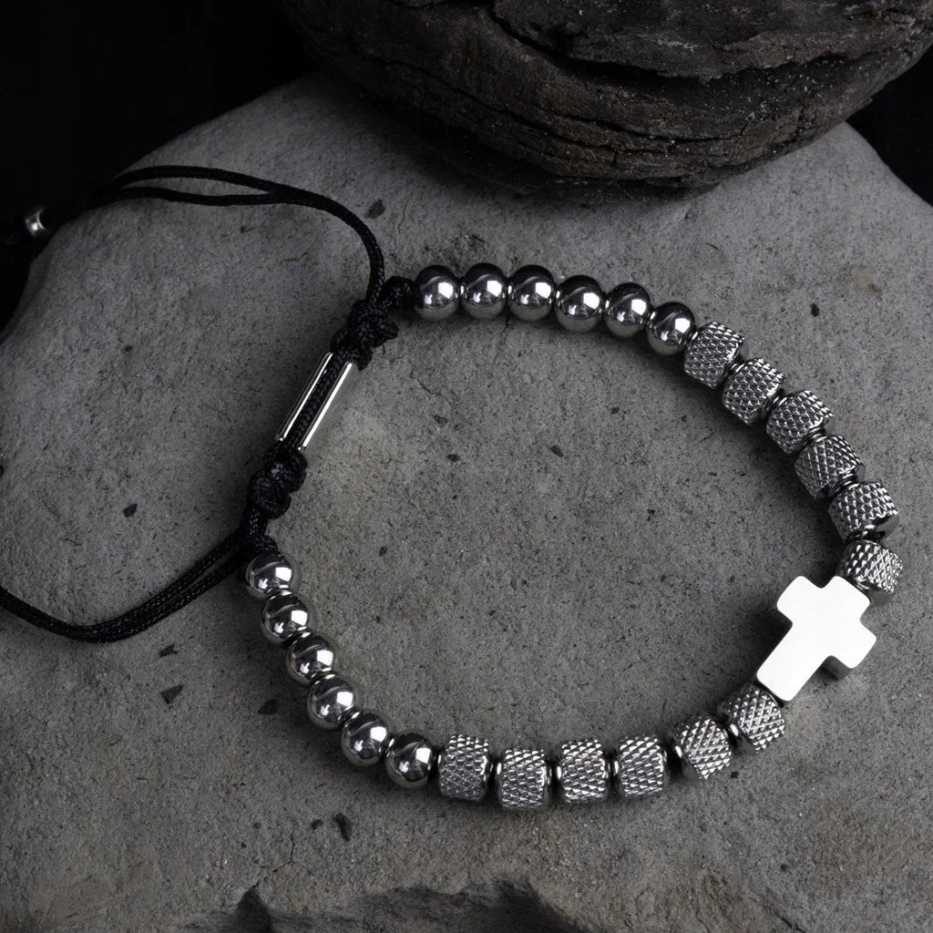 Uma pulseira que une masculinidade, devoção e estilo.