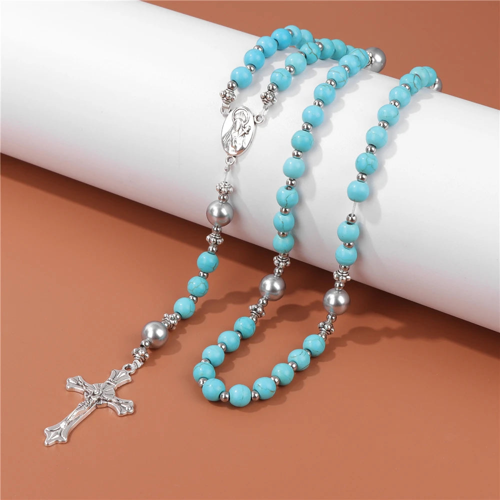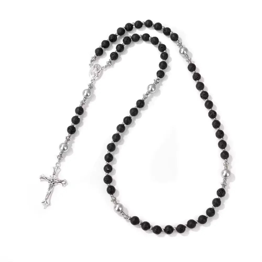 Terço de Nossa Senhora das Dores com Contas de Pedras Naturais