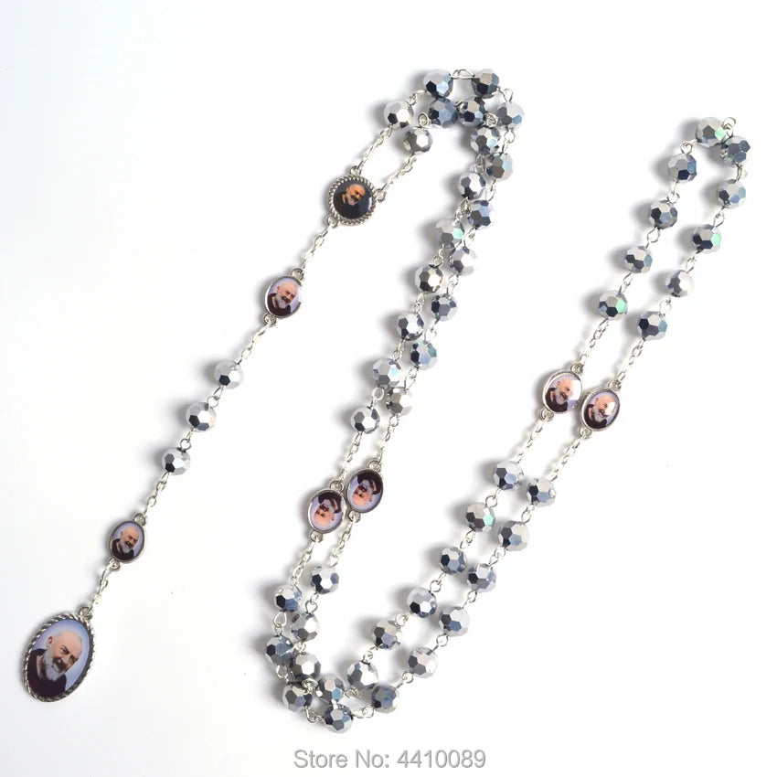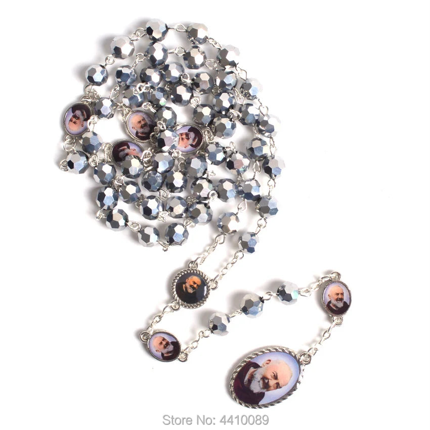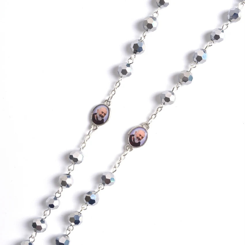 Terço de São Padre Pio com Contas Facetadas em Metal