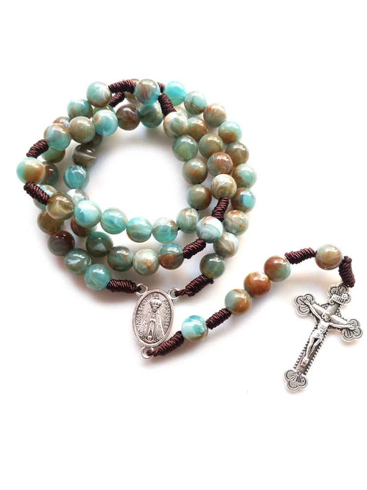 Com contas em acrílico no degradê azul e marrom, este terço é uma homenagem à padroeira do Brasil. Ideal para quem deseja rezar o Santo Terço diariamente, ele une beleza, tradição e devoção em uma peça leve e significativa.