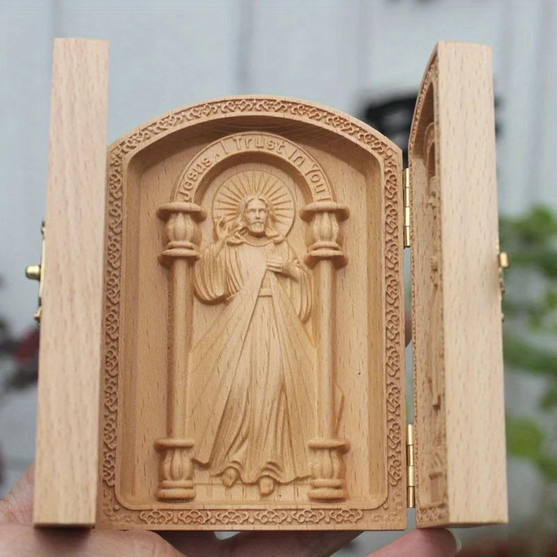 Transforme seu ambiente com o Tríptico de Madeira Sagrada, uma escolha perfeita para quem valoriza a fé e a arte.
